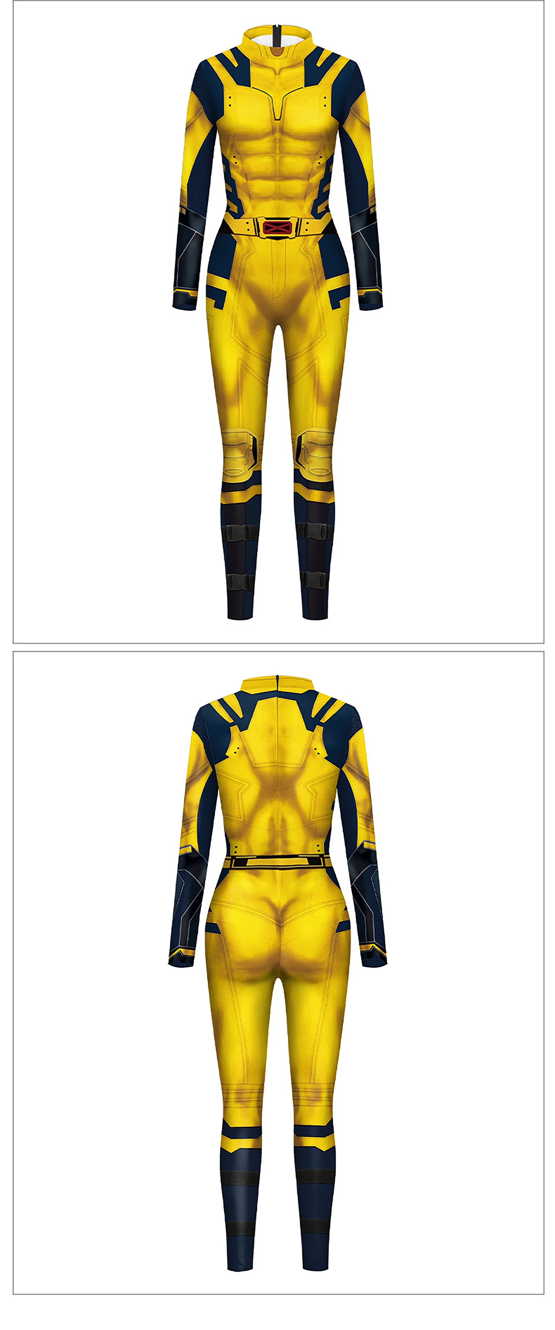 Design Autêntico: A fantasia é inspirada no uniforme clássico do Wolverine, com as cores vibrantes amarelo e azul e detalhes em preto que capturam a essência do super-herói.